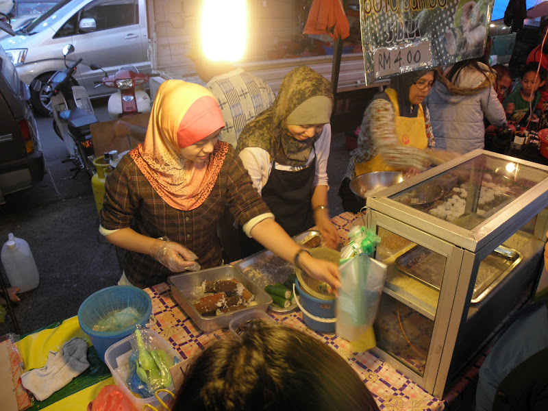 Putu Bambu or Putu Buluh is a Malaysian street food. This stall really caught dad and mom's attention. This delicious treat is`consisting of mixture of rice flour, gula Malacca and fresh grated coconut. The ingredients are stuffed into bamboo tube.